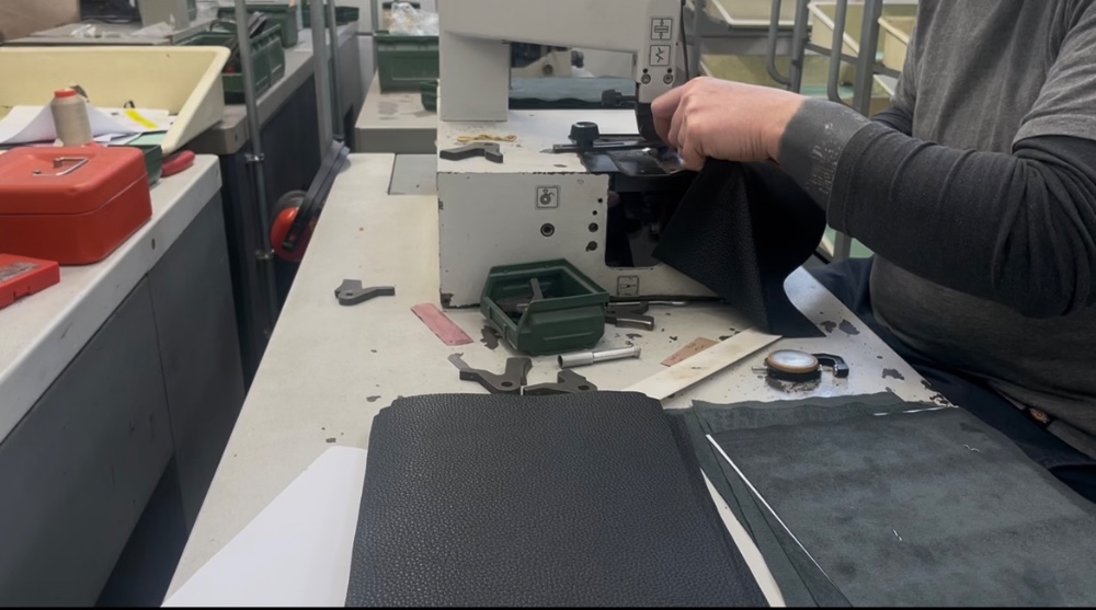 La spaccatura consente di portare la pelle allo spessore richiesto dal progetto, assicurando regolarità su tutta la superficie e coerenza tra i vari componenti. Questa operazione è fondamentale per definire la struttura del prodotto, il peso finale e il comportamento del materiale nelle fasi successive, soprattutto nella produzione di piccola pelletteria di alta gamma.